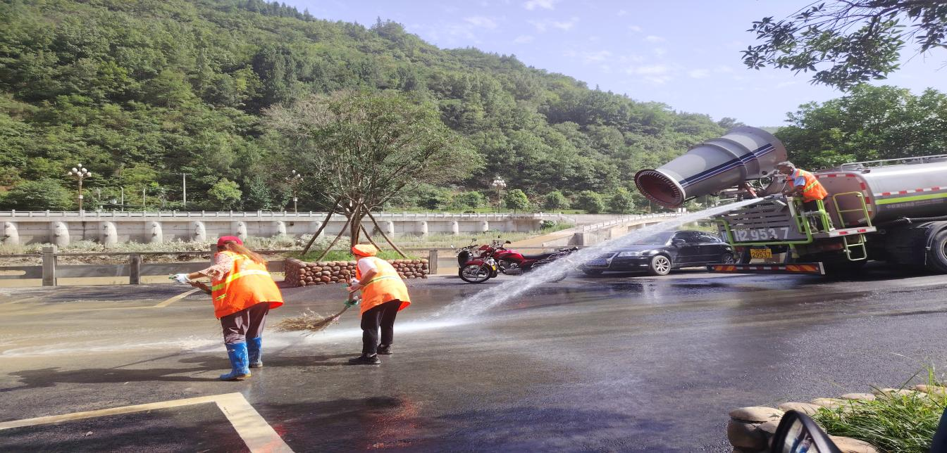 一是及时清淤治脏。出动环卫工人、执法队员共计110余人,车辆5台,迅速对朝天铁龙桥、古树公园等被洪水淹没退却区域开展道路清淤保畅作业,采取扫帚、铁锹等工具,通过人工清铲、清掏,高压水枪冲洗等方式对路面的淤泥、垃圾、堆积物进行深度清理和全面冲洗,力争在最短时间,以最快速度恢复街道路面的干净整洁。