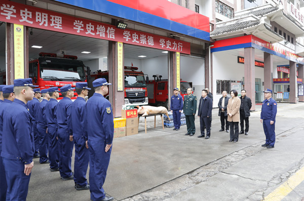 本网讯(王杰)新春佳节即将来临,1月27日,区委书记余飞宇深入区人武部、区消防大队和驻朝某部,看望慰问广大消防指战员和部队官兵,为他们送去慰问品,致以春节祝福和问候。区委副书记马丽,区委常委、区人武部政委山涛参加。余飞宇指出,一直以来,广大消防战士和部队官兵在支持地方经济社会发展方面做出了重要贡献,区委区政府和全区人民始终铭记你们的付出和努力。他表示,区委、区政府将进一步加大支持力度,积极探求...余飞宇看望慰问驻朝部队官兵