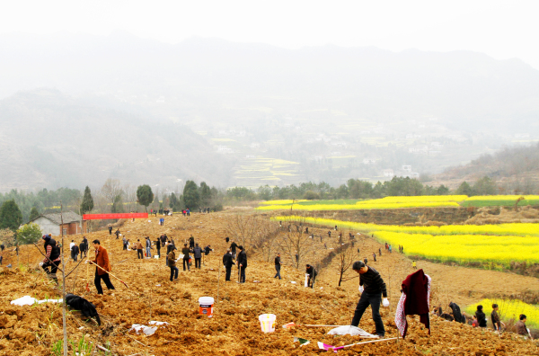人勤春来早、播绿正当时。3月12日是第37个植树节,上午,区委书记蔡邦银,区委副书记、区长伏玉琼,区人大常委会主任梁黎,区政协主席张晓春等在家的四大班子领导率全区广大党员干部,深入朝天镇金堆村四组,带头开展春季植树活动。 区四大班子领导参加春季植树活动