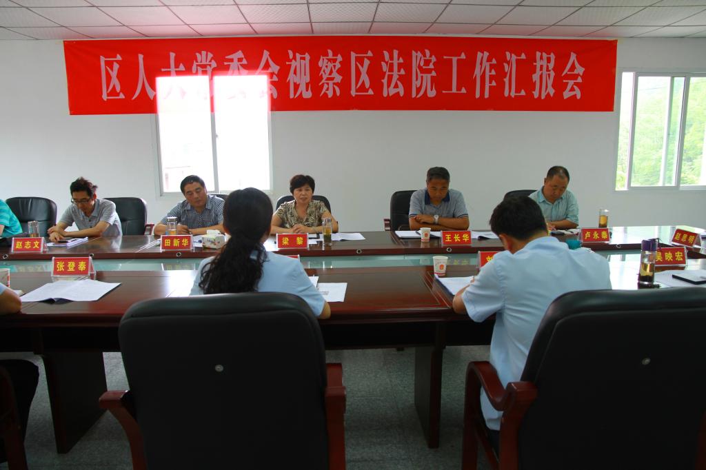 今年上半年,区人民法院坚持“为大局服务,为人民司法”的工作主题,以争创“建一流法院,创一流业绩”为工作目标,受理各类案件911件,结案688件,结案率75.5%,法定审执限内结案率达100%,深入推进社会矛盾化解、公正廉...区人大常委会视察区人民法院工作